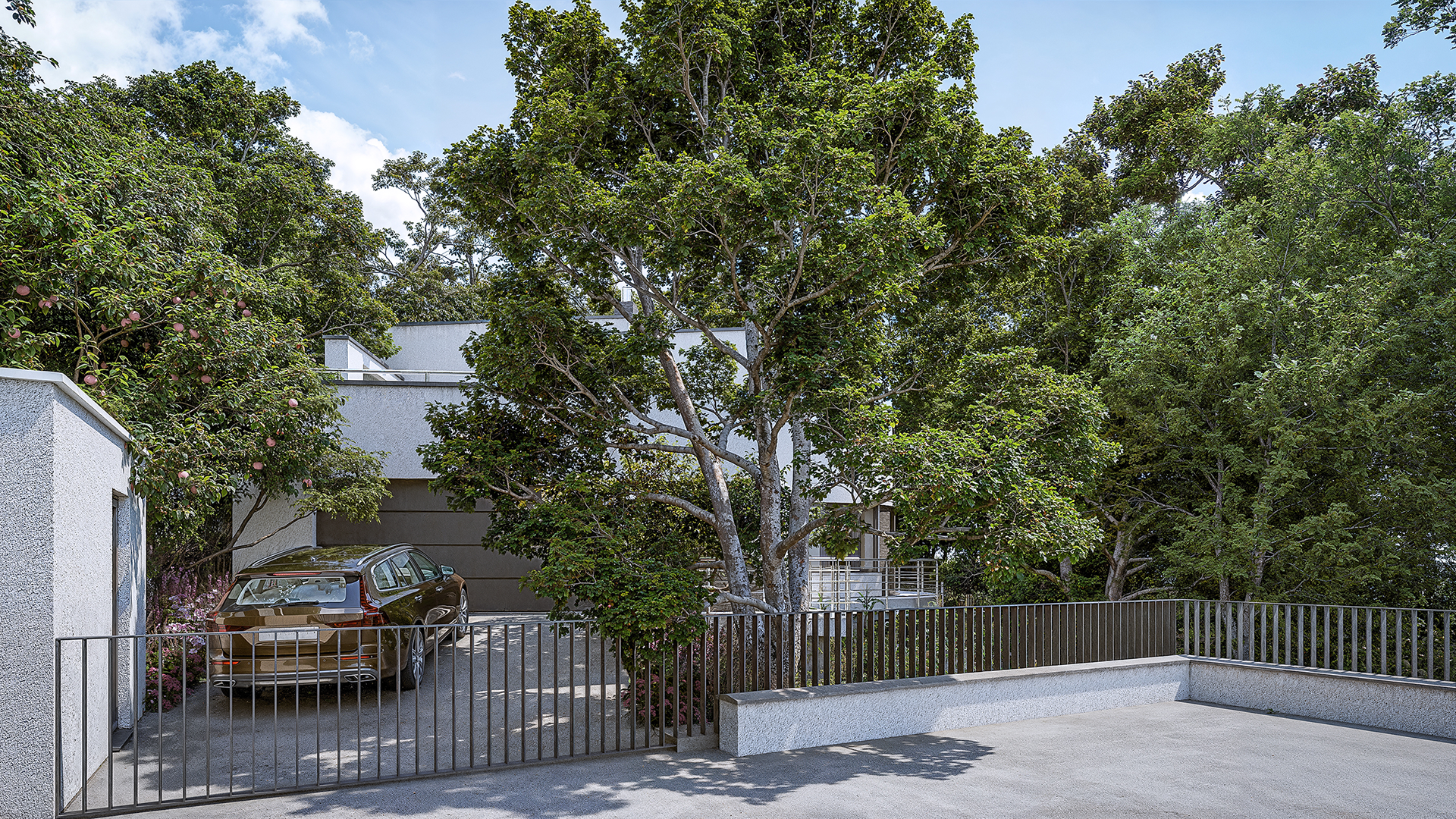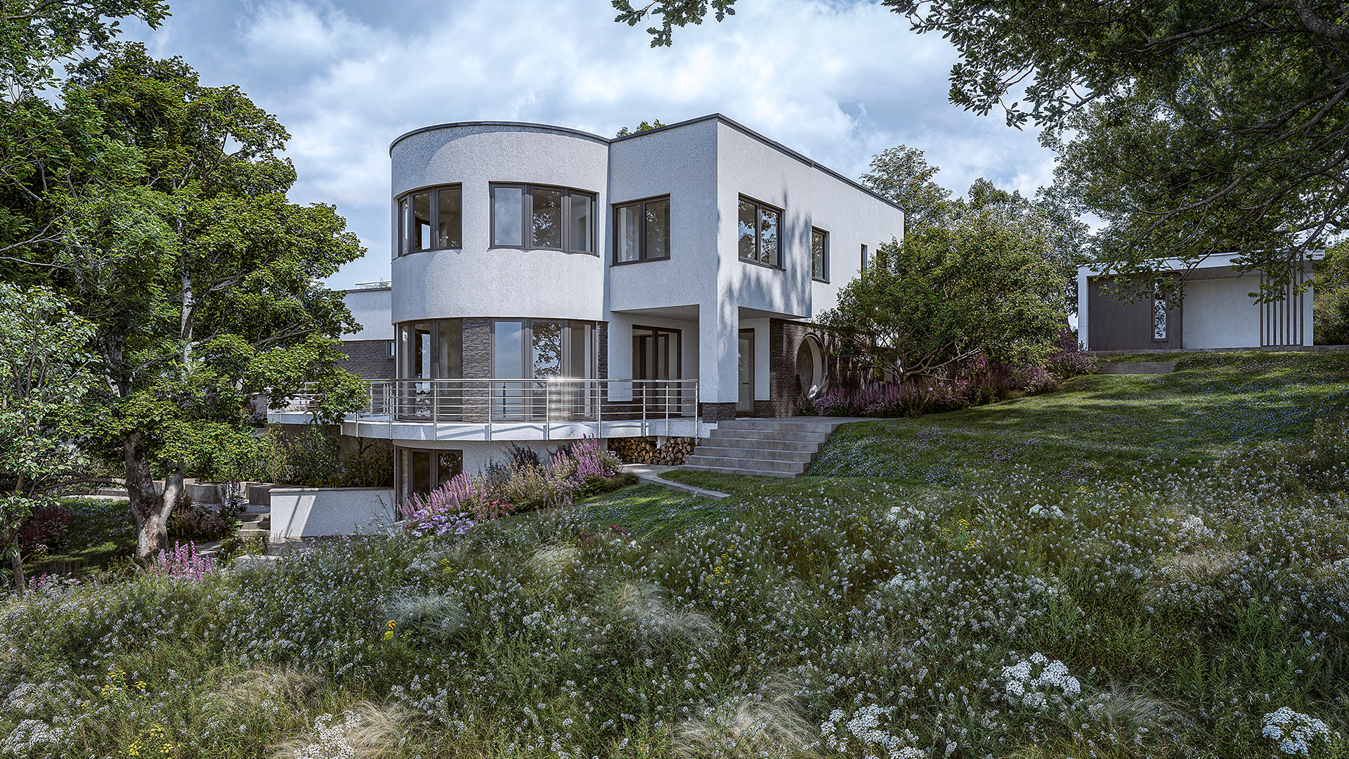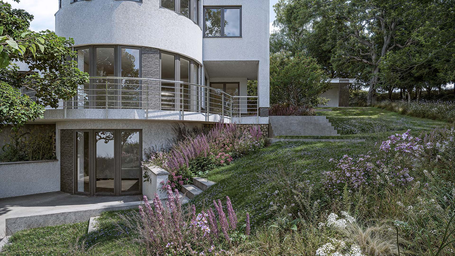 Images of the landscape architecture design for the existing house near the Slovak capital.